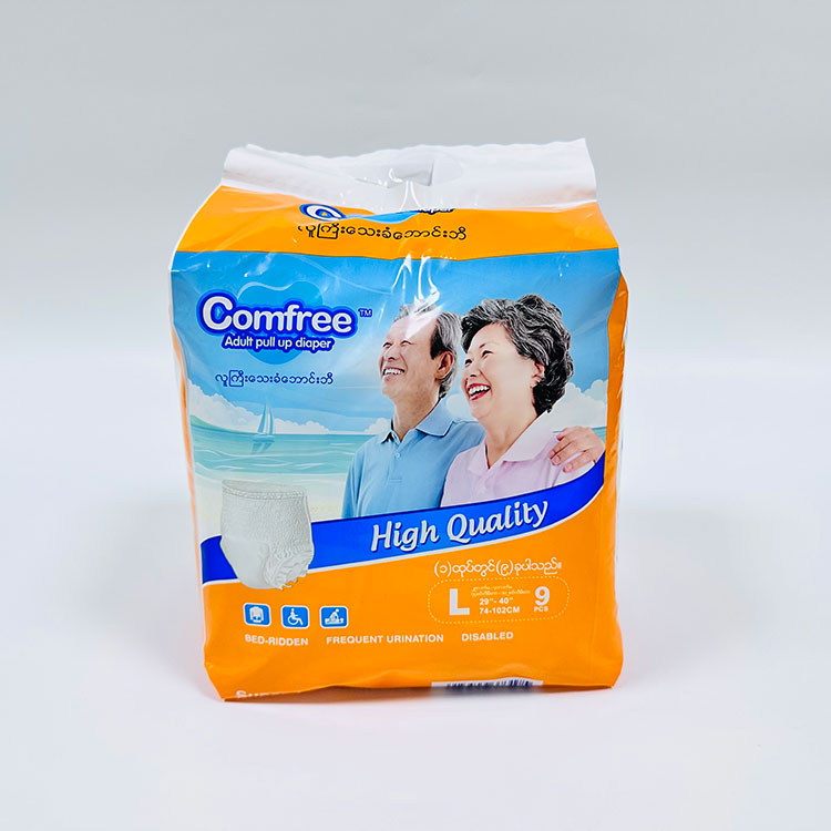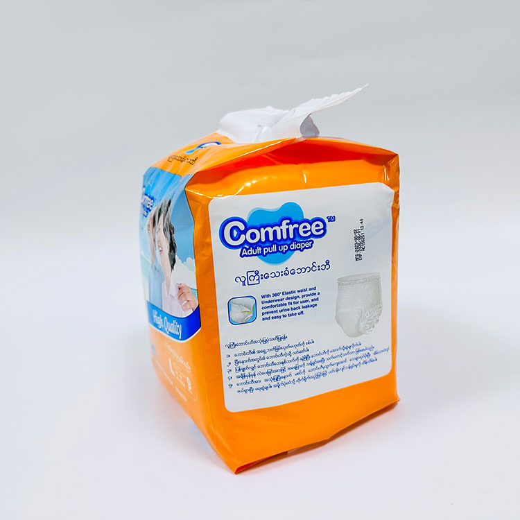 మాకు కంఫర్ట్ ముఖ్యం మరియు మా అడల్ట్ డైపర్లు వెట్నెస్ ఇండికేటర్ను దృష్టిలో ఉంచుకుని రూపొందించబడ్డాయి. డైపర్ చర్మానికి వ్యతిరేకంగా మృదువైన మరియు సౌకర్యవంతమైన అనుభూతిని అందించే అధిక-నాణ్యత శ్వాసక్రియ పదార్థంతో తయారు చేయబడింది. సాగే నడుము పట్టీ మరియు లెగ్ కఫ్లు ధరించేవారిని సురక్షితంగా మరియు సౌకర్యవంతంగా ఉంచుతాయి, లీక్లను నివారిస్తాయి మరియు చలనశీలతను మెరుగుపరుస్తాయి. డైపర్లు ఒక సూపర్-శోషక కోర్ని కలిగి ఉంటాయి, ఇవి త్వరగా తేమను లాక్ చేస్తాయి, చర్మాన్ని పొడిగా ఉంచుతాయి మరియు అసౌకర్యం లేదా చికాకు ప్రమాదాన్ని తగ్గిస్తాయి.