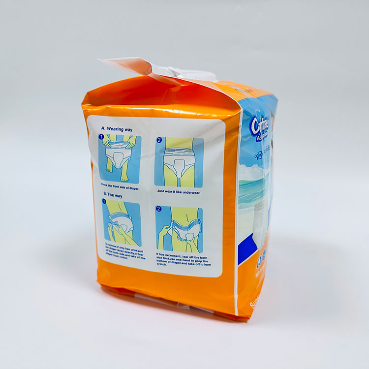 వెట్నెస్ ఇండికేటర్తో కూడిన మా వయోజన డైపర్లు ఉన్నతమైన సౌలభ్యం మరియు వివేకాన్ని అందించడమే కాకుండా, వాడుకలో సౌలభ్యానికి ప్రాధాన్యతనిస్తాయి. మేము త్వరిత మరియు సురక్షితమైన డైపర్ మార్పుల కోసం ఉపయోగించడానికి సులభమైన ఫాస్టెనింగ్ ట్యాబ్లను చేర్చాము. ప్రతిసారీ సరైన ఫిట్ని నిర్ధారిస్తూ, లేబుల్లను అవసరమైన విధంగా సర్దుబాటు చేయవచ్చు మరియు పునఃస్థాపించవచ్చు. అదనంగా, మా డైపర్లు సులభంగా హ్యాండిల్ చేయడానికి, పరిశుభ్రత మరియు పరిశుభ్రతను ప్రోత్సహించడానికి రూపొందించబడ్డాయి.