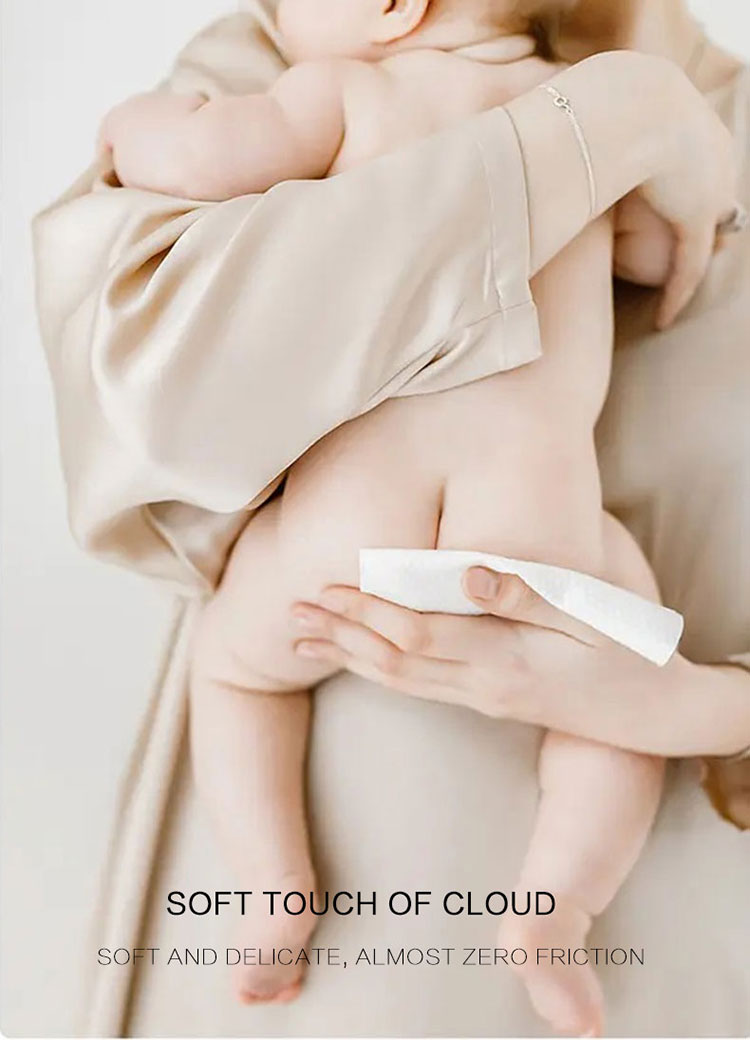 -మీ శిశువు యొక్క సున్నితమైన చర్మానికి 99.91% స్వచ్ఛమైన నీరు. పెరిగిన పరిమాణం మరియు మందంతో, అన్ని శుభ్రపరిచే అవసరాలకు ఒక షీట్.